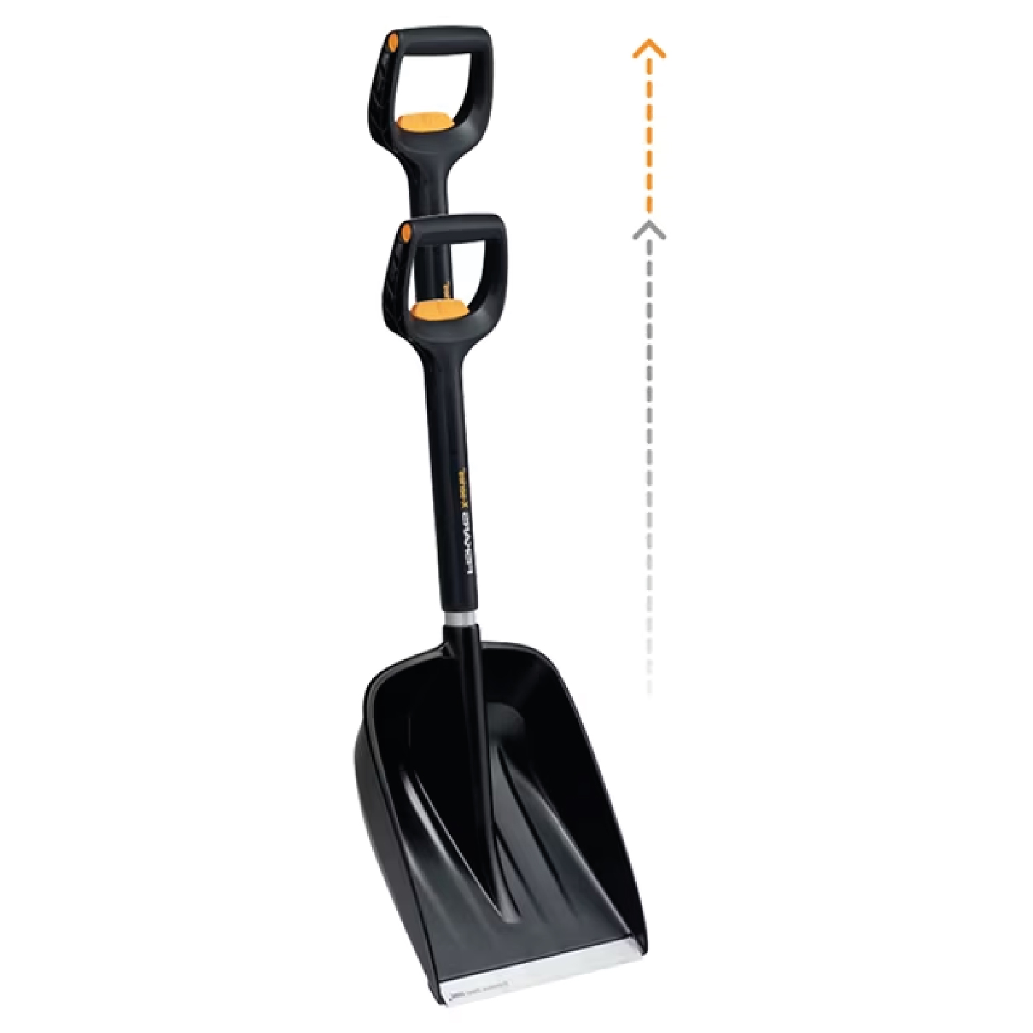 Bilsnöskyffeln har ett slitstark aluminiumskaft och strukturerade, halkfria grepp för bättre kontroll, minskad trötthet och extra isolering mot kyla. Stora D-formade handtag rymmer lätt kraftiga vinterhandskar. Det vinklade D-formade handtaget hjälper till att hålla handlederna i en bekväm, ergonomisk position.
