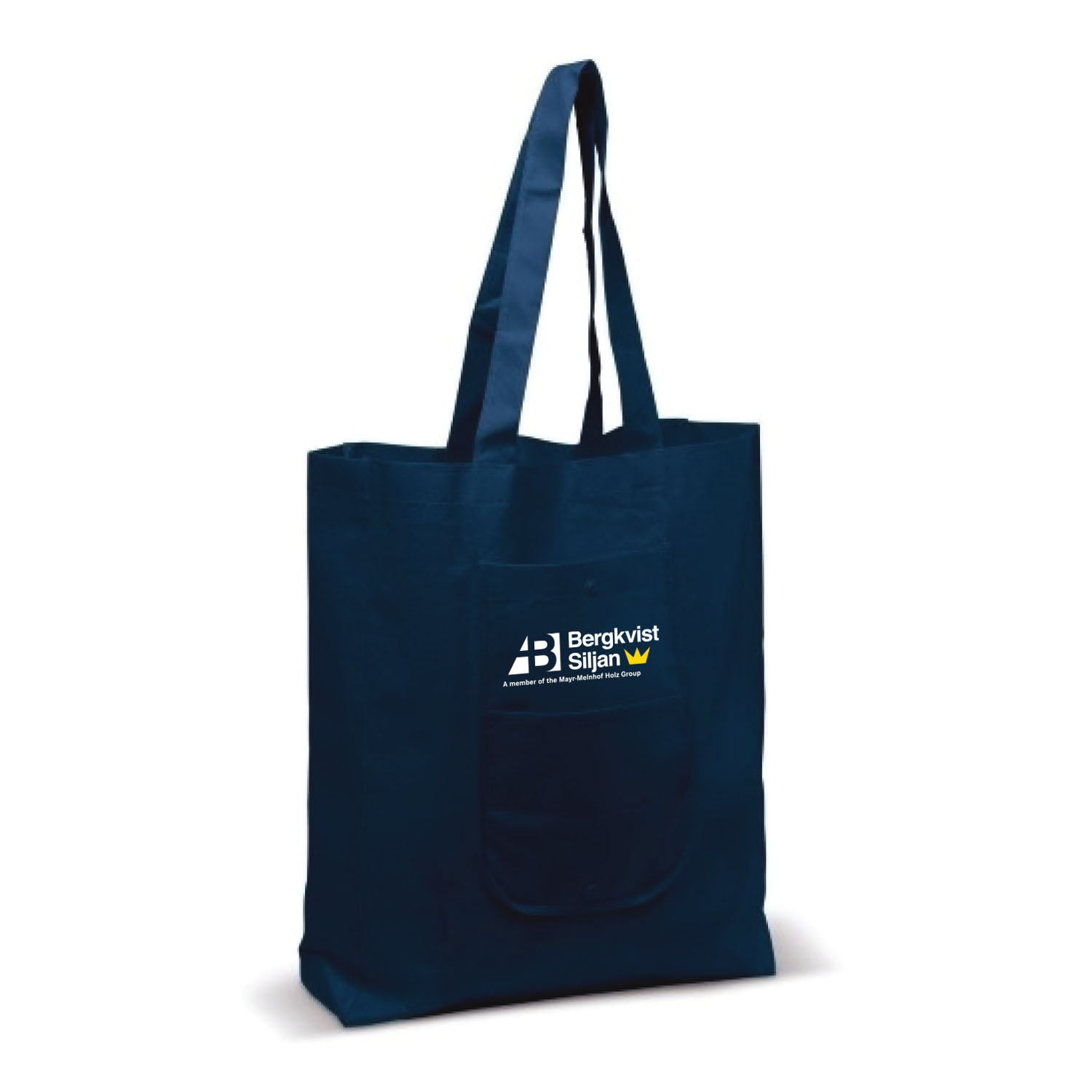 Ihopvikbar Non-Woven kasse med långa handtag. Kassens dimensioner vid utvecklad är 44 x 11 x 36 cm.