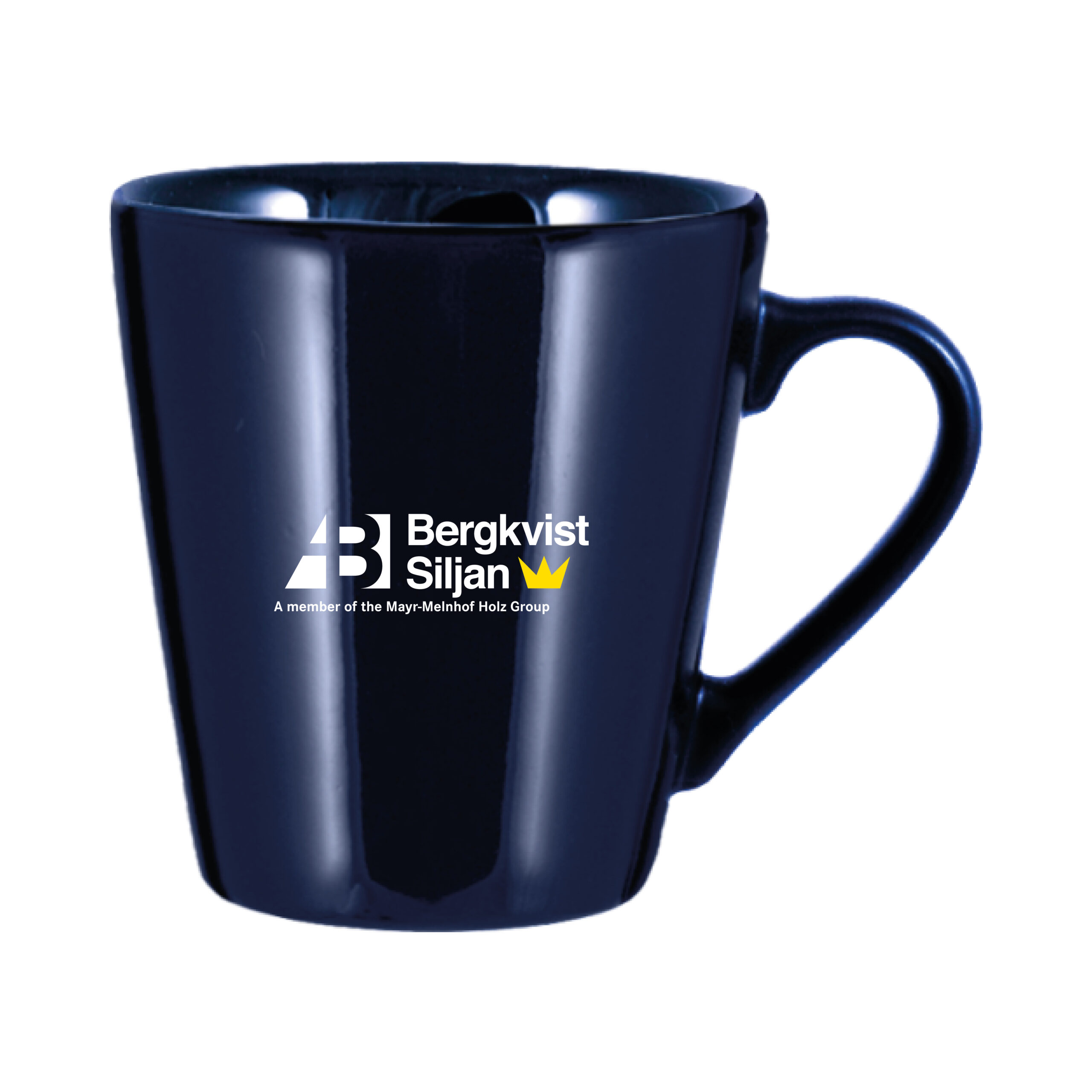 Blå kaffemugg med blank utsida och blank insida. Stapelbar i tre. Rymmer 25cl.