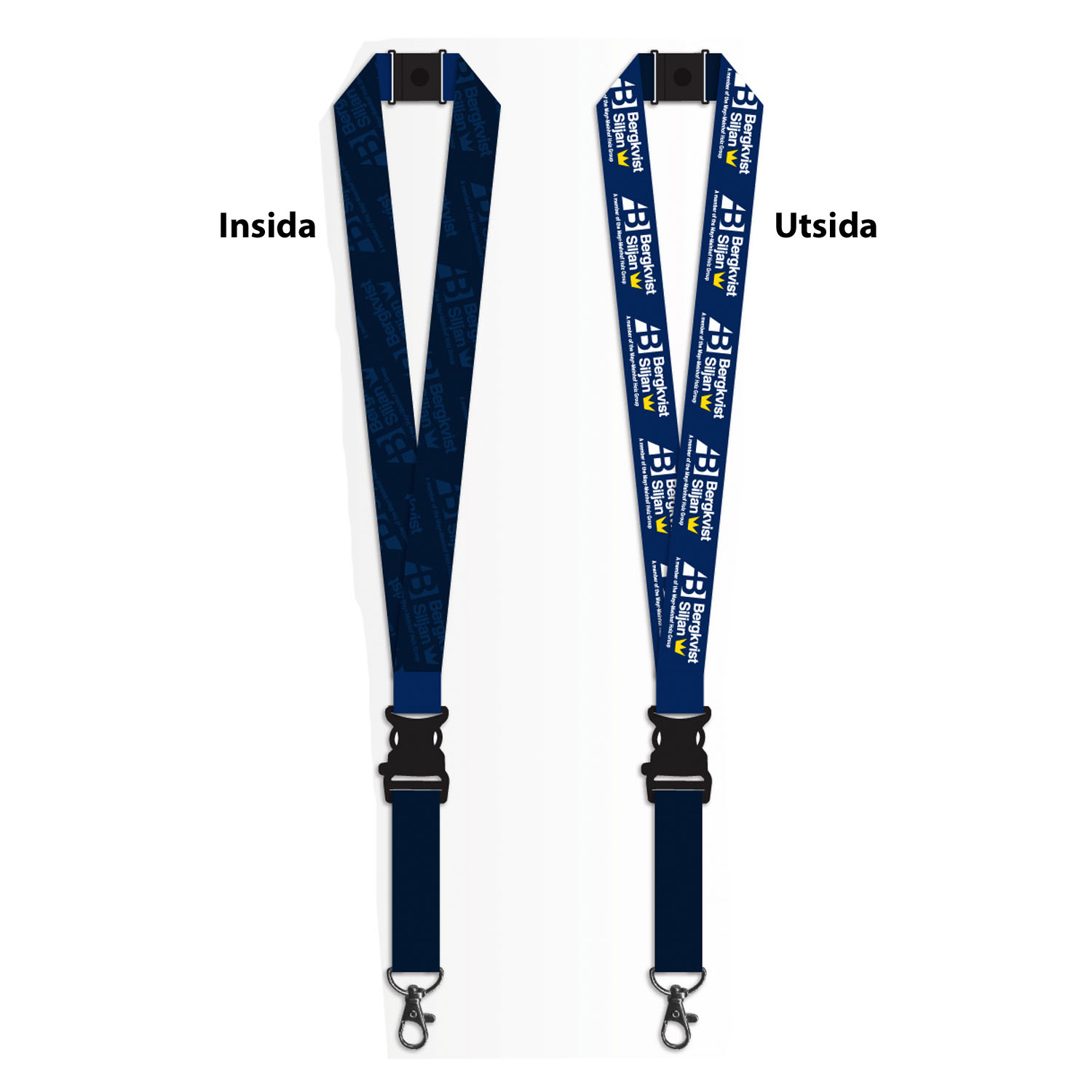 Klassiskt logoband med högupplöst sublimeringstryck för absolut bästa detaljrikedom. Unikt tryck på fram och baksida. Inklusive karbinhake och säkerhetsfäste i nacken. Miljösmart EU-produktion med kort leveranstid.